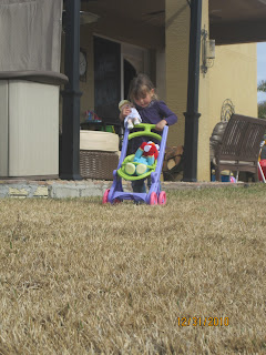 Eventually Lou came out and joined us. Kelsey decided she could push her toy stroller on the dead grass, but soon realized that wouldn't work and carried it out to where we were.